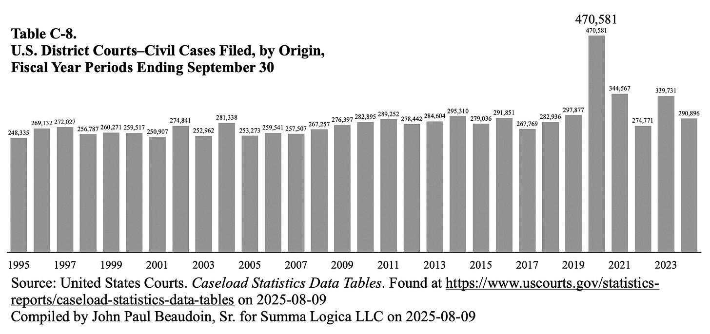 I know of no other analysis that empirically proves that the U.S. Courts are far astray from their mission of justice and equity. If Justice Gorsuch or any other Supreme Court Justice views the graphs in Figures 1 & 2 below, republished in this article, then they may understand the vital importance of fixing the U.S. courts.